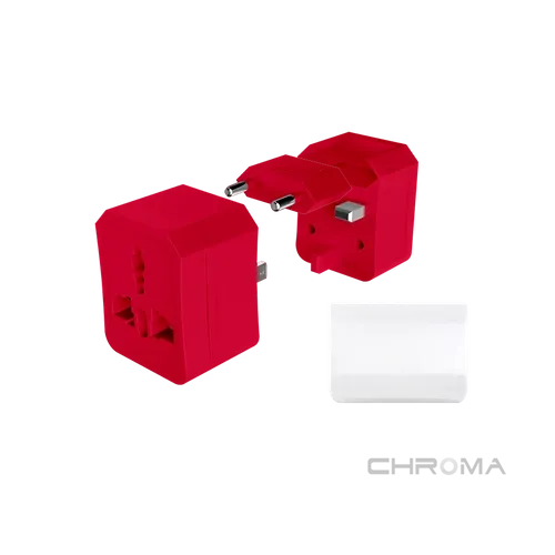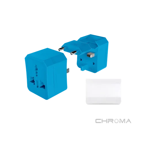 This colourful universal travel adapter covers more then 150 country's wall adapters. Includes a built in fuse protection. Perfect for everyone on the go. All stored in a nice clear case!