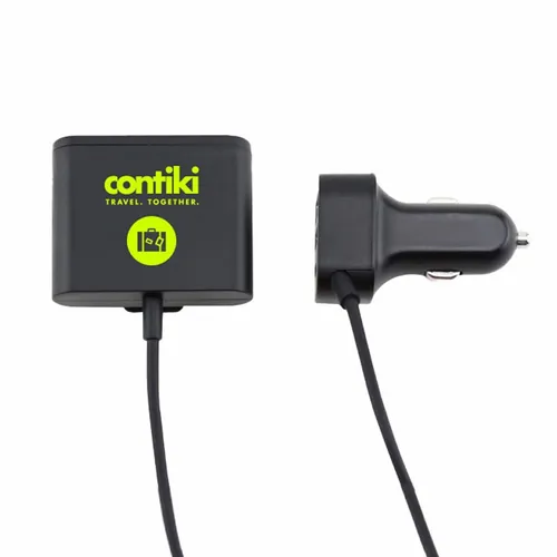 The Road Trip car charger provides all the power and charging ports (even one USB Type C port!) to keep your mobile devices charged while road-tripping! Features: - Front Seat Charging Ports with total 3.4 A Output: 2 x USB; 1 x Type C. Simultaneously charge 3 iPhones at full speed. - Back Seat Charging Ports with total 3.4 A Output: 2 x USB. Simultaneously charge an iPad and an iPhone at full speed - Cable Length: 6 Feet.