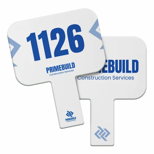 Custom Auction Paddles are fully personalised paddles designed for bidder identification and event branding. Available in various shapes, sizes, and materials, they can feature numbers, logos, or artwork. Durable and easy to hold, they’re perfect for charity auctions, fundraisers, galas, and corporate events.