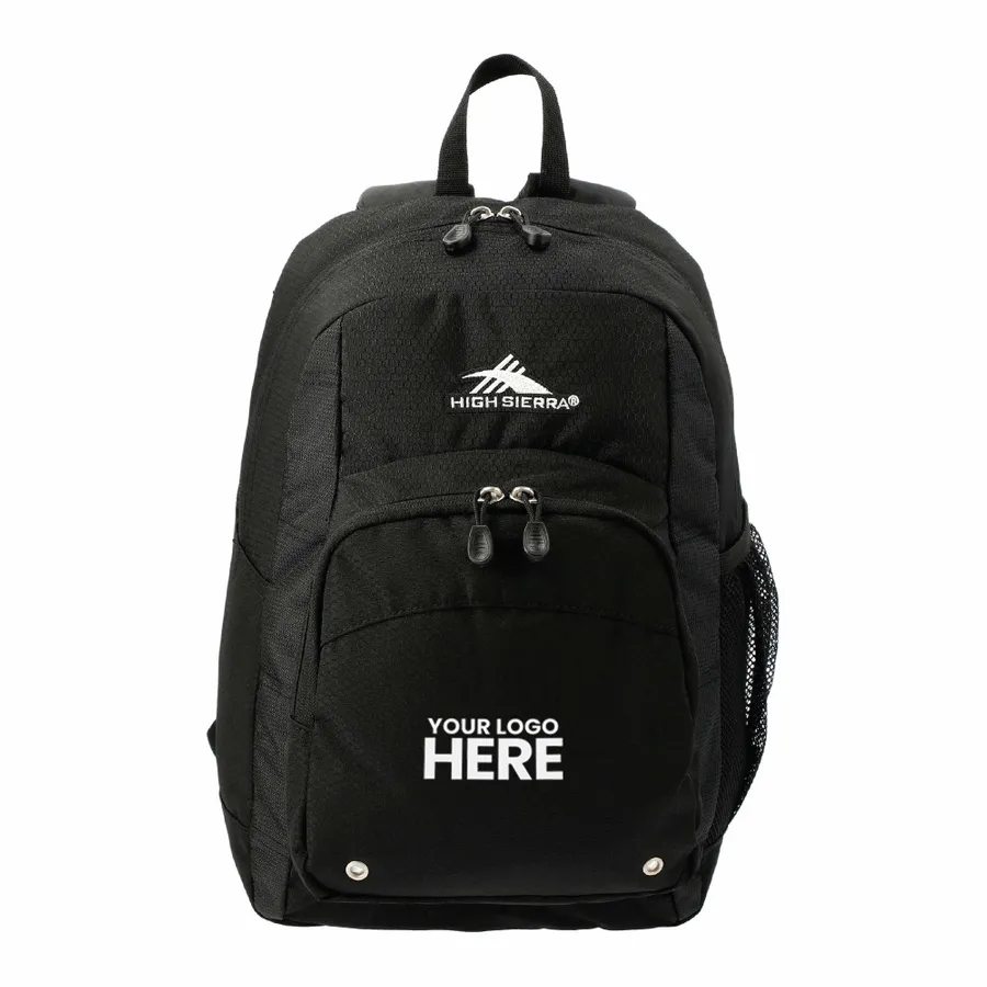 Constructed from a durable blend of nylon and Duralite, the High Sierra Impact Backpack features a spacious front-loading main compartment. It also includes a large gusseted front pocket for additional accessories, a cell phone pocket, and a mesh water bottle pocket, plus a handy organiser with pen pockets and a key fob. The backpack has contoured, padded shoulder straps and a cushioned back panel for comfortable wear, along with a grab-handle for carrying.