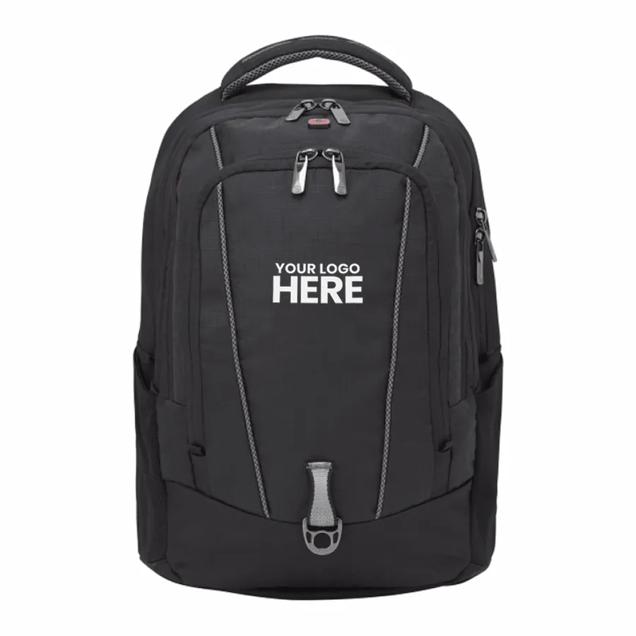 The Wenger Origins Recycled 38 cm Computer Backpack is made from eco-friendly RPET. The open main compartment features a 38 cm computer sleeve, plus plenty of room for your belongings. The bag also features an organizational front pocket with key fob, an additional zippered pocket and a mesh foam pocket. The front panel offers a custom d-ring for hanging carabiners. This bag features Wenger Airflow moisture-wicking mesh, a supportive back board for computer protection and a back webbing trolley sleeve.