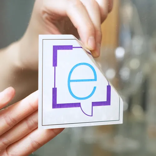 Front adhesive stickers are printed on clear material and have an adhesive on the front, printed side of the sticker. These stickers are particularly helpful for certain uses including business storefronts that want to display relevant information to their customers such as sale season, causes they support, and more.