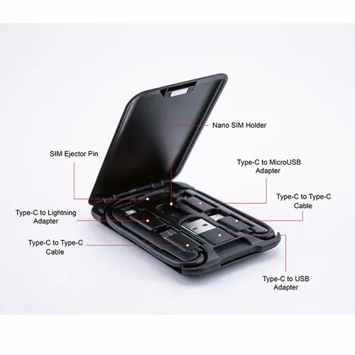 Equip your life with this sleek pocket-size adapter kit. With its cleverly compact design, it shrewdly holds several adapters for modern technical issues. The Cable Card will help tackle unforeseen adapter related problems that colleagues might experience during a business trip or meeting. With this easily stored and handy kit, you might be the one who saves the day. Includes: 1 Short USB(male)-to-MicroUSB (male) cable 1 MicroUSB (female)-to-Type-C(male) adapter 1 MicroUSB (female)-to-Light