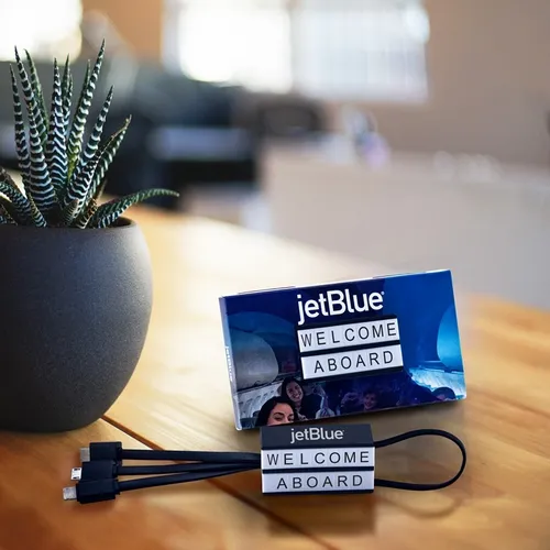 The Cinema Lightbox Cable multi charger is practical and perfect for sharing messages for any occasion. The light up message board is designed to resemble a retro mini cinema sign. Utilising the included letter decals, you can easily personalise the lightbox with your own message. Built-in cables include: iPhone 5-pin, Micro USB, and Type-C. The connectors are compatible with a majority of the phones in the market, including Android® phones and iPhone® 5 and later models. Plus, it