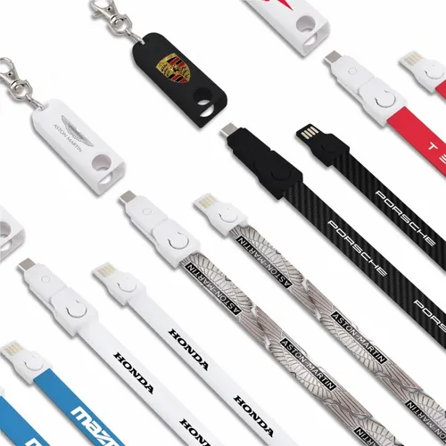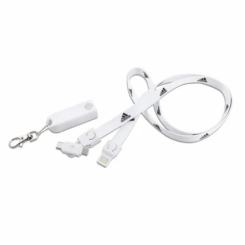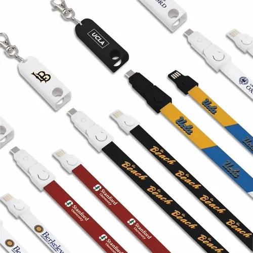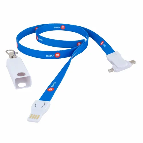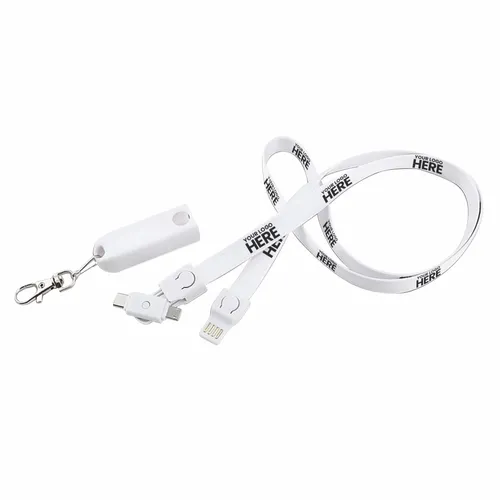 The perfect item for conventions, trade shows, and sporting events. Fashionable and Convenient with nice full colour branding area on the fabric strap. The Connect All Lanyard Charging Cable charges all Smart Phones with it's Type-C tip and combo tip for 8-pin style and Micro-USB charging. Simply detach the key chain clip and the lanyard to become a 3-foot charging cable. Full-colour print available to clearly display a client's logo. NOTE: Badge holder not included.