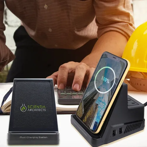 A compact powerhouse of a docking station that everyone with an active lifestyle or business style needs on their desktop. Rest your device on the dock for a fast charge and comfortable vertical viewing angle, so you can easily monitor incoming calls or maintain important face-to-face video calls when you need your hands free. The dock provides 5 additional high-speed charging ports: 2 USB, 2 AC outlets, and USB-C.