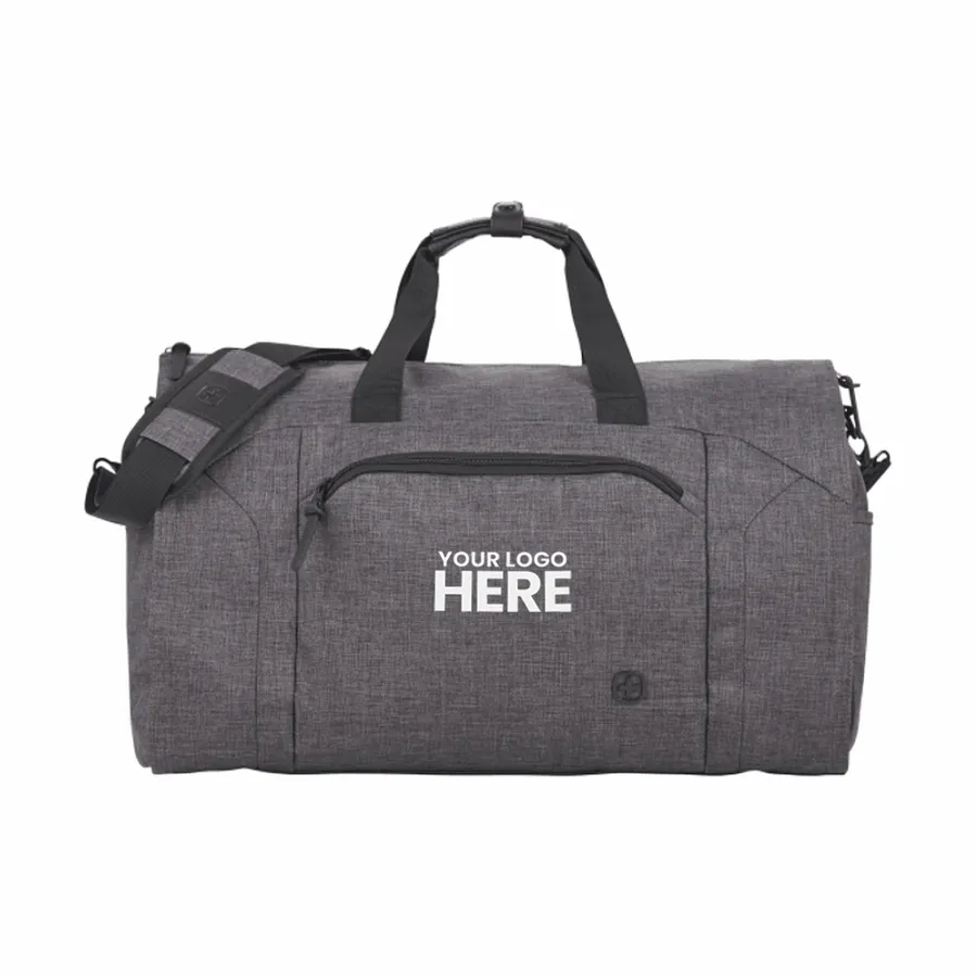 The Wenger Getaway 20 RPET Garment Duffel combines the functionality of a garment bag with the portability and simple elegance of a luxury duffel bag. The main compartment unzips to reveal side sleeves for shoes, designated garment storage and space for an entire weekend’s worth of clothing. The exterior boasts two side accessory pockets and pockets on the front and back of the duffel for last-minute items.