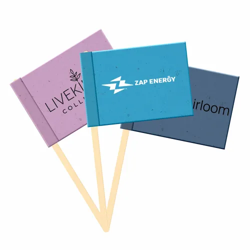 Seed Paper Flags are the perfect eco-conscious detail for food, drinks, or event decorations. Lightweight and impactful, each flag carries your brand message while promoting sustainability. Guests can take them home, plant them, and grow wildflowers, reinforcing your brand long after the event.