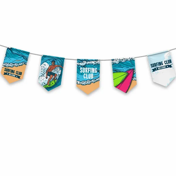 Our pennant flags are made of durable, weather-resistant fabric, perfect for string displays.