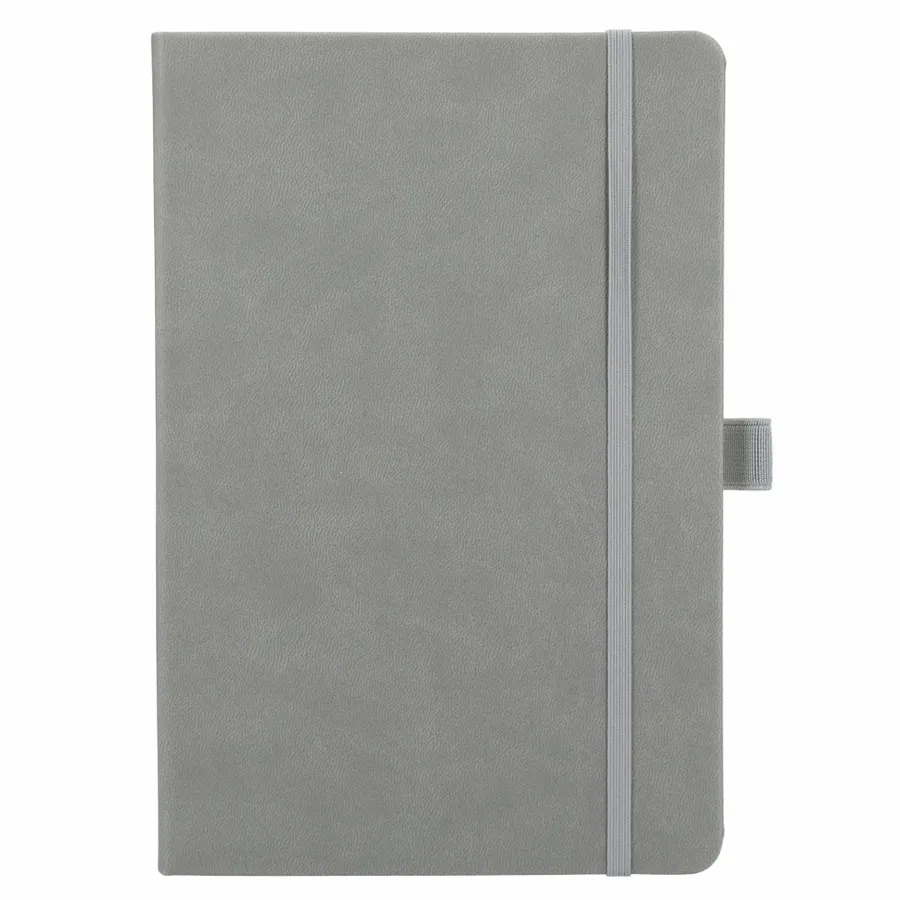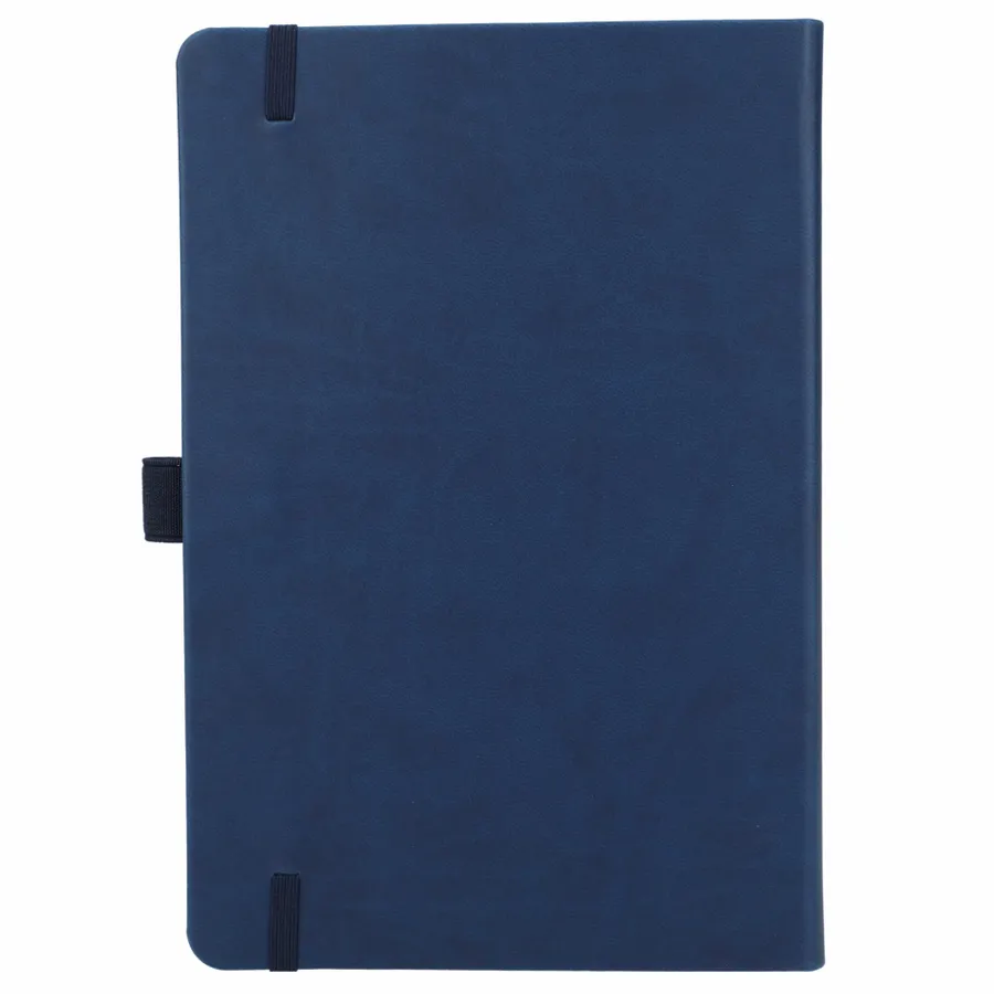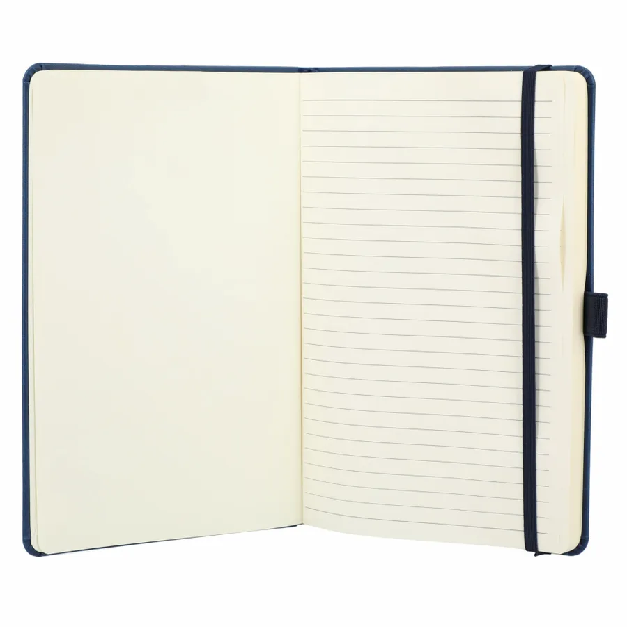 The 5.5 x 8.5” Mano Recycled Hard Bound Journal features a 30% recycled post-consumer polyester+ 70% polyurethane cover with 80 pages of recycled cream lined paper. Includes document pocket, color matching ribbon page marker, elastic band and pen loop.