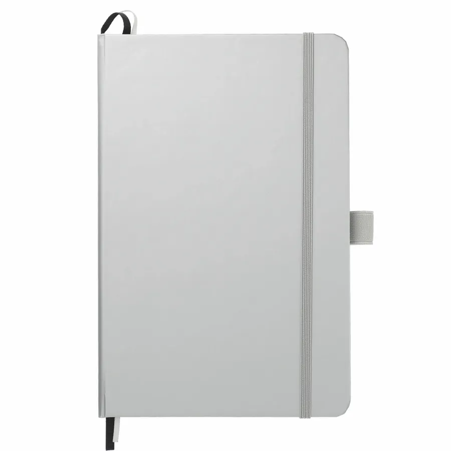The 5.5 x 8.5 FSC Mix Bound Journal features a FSC-certified paper hard cover with 80 sheets of white FSC-certified, soy-based ink lined paper. Includes color-matching elastic closure, pen loop and ribbon page marker. Through a partnership with 1% For The Planet, one percent of sales of all EcoSmart products are donated to environmental nonprofits. Digital Inkjet not available on Silver color.