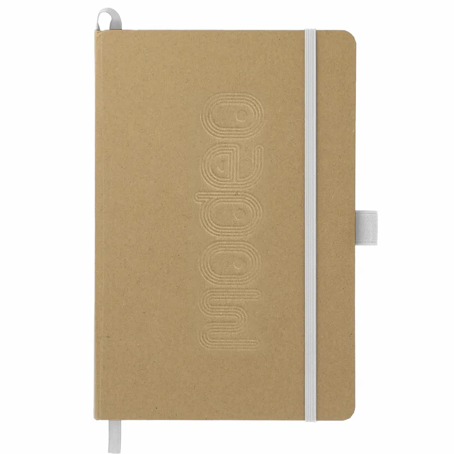 The 5.5 x 8.5 FSC Mix Eco Color Bound Journal features a hard bound cover made from recycled paper. This notebook includes 80 sheets of FSC Mix lined paper with color accent painted edge pages and color matching built-in elastic closure. The 5.5 x 8.5 FSC Mix Eco Color Bound Journal includes a pen loop, ribbon page marker, and expandable accordion pocket. Through a partnership with 1% For The Planet, one percent of sales of all EcoSmart products are donated to environmental nonprofits. Due to the nature of the material, there may be color variances.