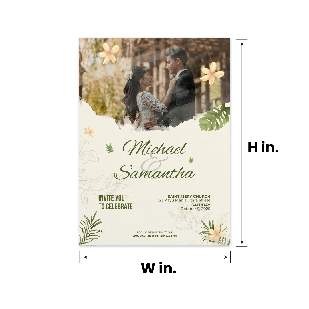 Set the Tone for Your Big Day with Custom Wedding Invitations Make a lasting first impression with beautifully crafted wedding invitations that reflect your love story and style. Whether you're planning a classic ceremony or a modern celebration, these customisable cards offer elegant finishes and premium materials to match your vision. Add your names, wedding details, or a heartfelt message and choose from foil accents, embossed textures, or full-colour printing to make each invite unforgettable. Perfect for formal weddings, destination events, or intimate gatherings, these invitations help you share the joy with grace and sophistication.