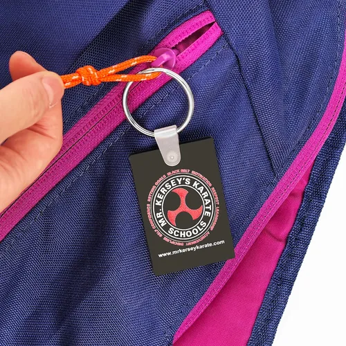 Our luggage tag keychains can be customised and are made of 5.5 cm x 3.5 cm soft plastic and a 2cm diameter metal ring. Reasonable size for easy carrying, is light and handy and has good tags for your stuff so you can easily find it. It's convenient and practical, suit for a home, office, keychain, a bunch of keys, pet ID tag, luggage tag, rental management company, storage facility, and more.