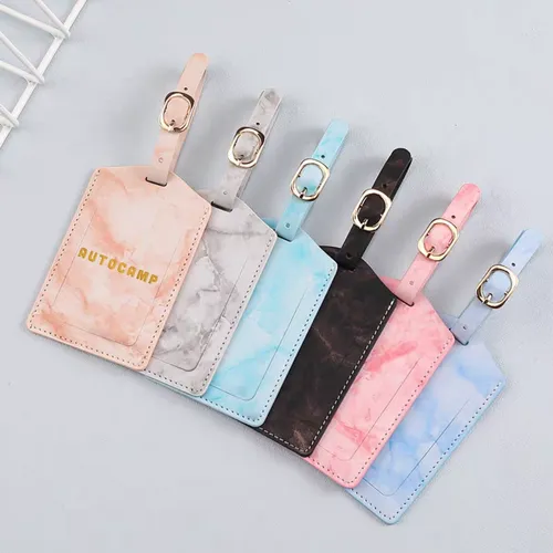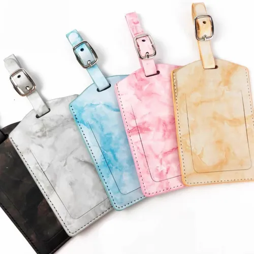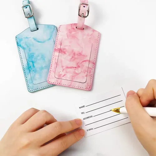 Flip Marbling Luggage Tags - Introducing our Flip Marbling Luggage Tags – the perfect blend of style and functionality. Crafted from premium quality PU Leather, these tags add a touch of elegance to your travel gear. Designed to withstand the rigours of travel, they feature a secure buckle strap and a privacy flap to protect your personal information. Elevate your journey with our Luxury Leather Luggage Tags and travel with confidence and style.