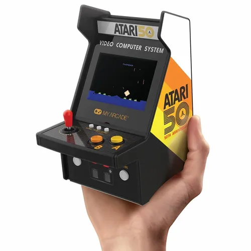 2.75" full-colour back-lit display, featuring eye-catching artwork inspired by the nostalgic PAC-MAN arcade cabinet! Play your favorite game on the go and relive those classic arcade moments anytime, anywhere. Whether you power it with 4 AA batteries (not included) for portable fun or connect it with a Type-C cable (not included) for stationary play, this device is a must-have for any game room, office, or display case. Bring a touch of retro gaming magic to your space.