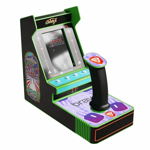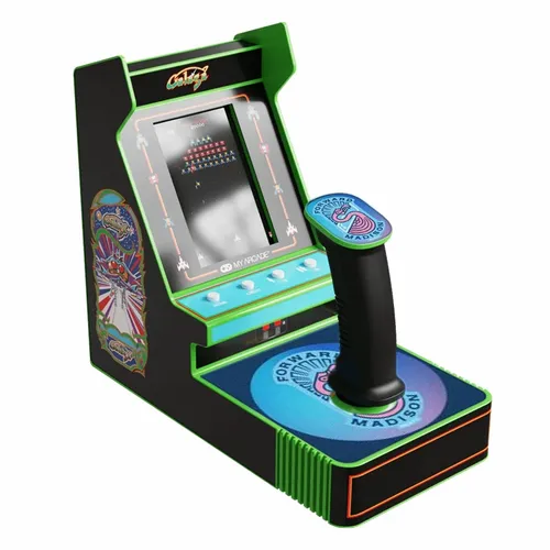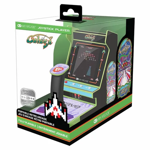 High-resolution 3.5" full-colour vertical display, featuring eye-catching artwork inspired by the nostalgic Galaga arcade cabinet!