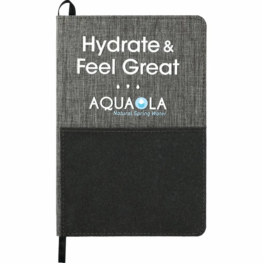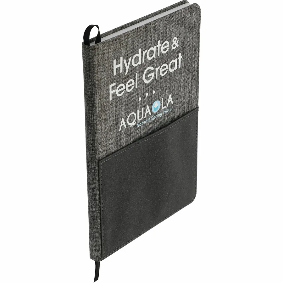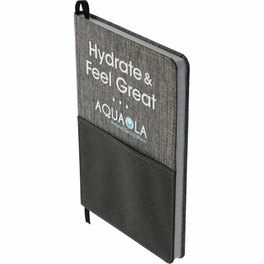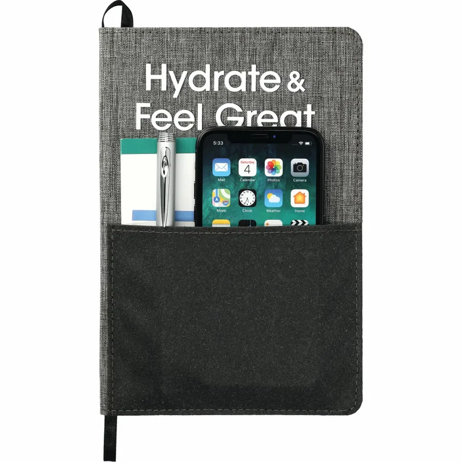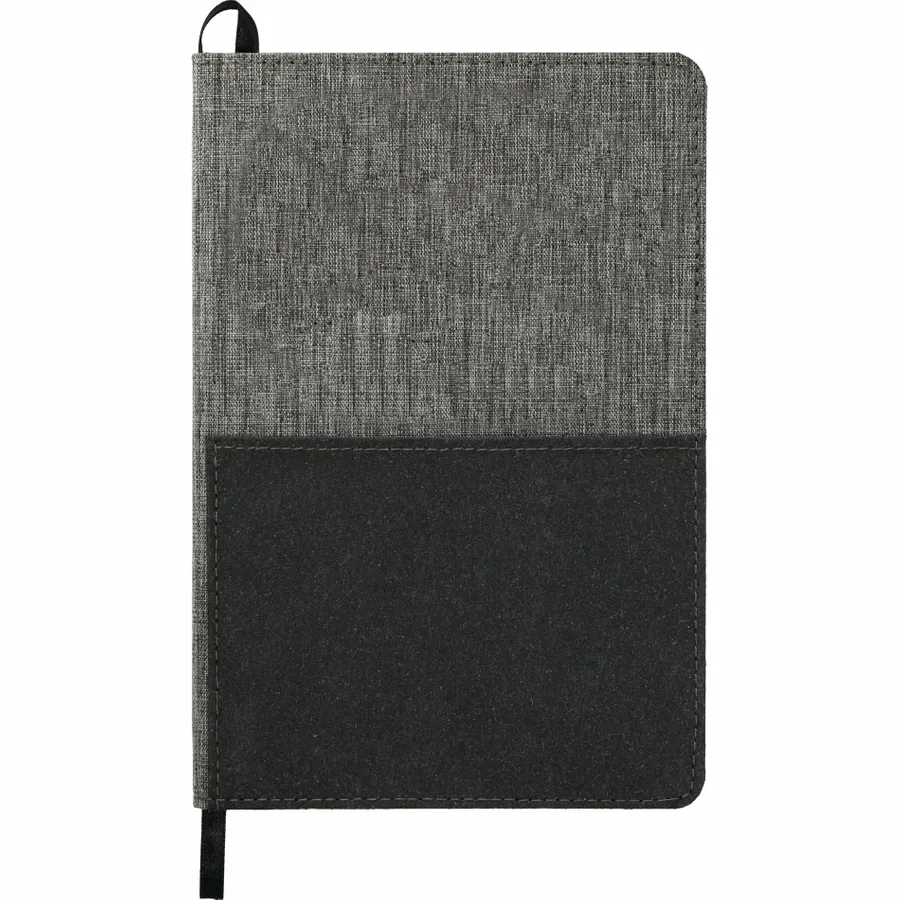 Made of post-consumer recycled fabrics, the 5.5 x 8.5 FSC Mix Reclaim Recycled Bound Journal features a RPET hard cover with recycled leather front pocket for storing documents, smartphone, and other essentials. This notebook includes 80 sheets of FSC Mix recycled white paper and a back document pocket. This item contains 85% of recycled material. Through a partnership with 1% For The Planet, one percent of sales of this and all EcoSmart products will be donated to nonprofits dedicated to protecting the planet.