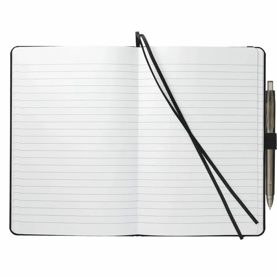 This set includes (2800-80) 5.5 x 8.5 Recycled Marine Bound Journal Set and (6003-29) FUNCTION RPET Gel Pen. Features a uniquely crafted cover material, Repreve, which is made with recycled ocean plastic and waste collected from coastlines of developing countries. Includes color-matching elastic closure, pen loop and ribbon page marker. 96 sheets of lined recycled paper. Through a partnership with 1% For The Planet, one percent of sales of all EcoSmart products are donated to environmental nonprofits.