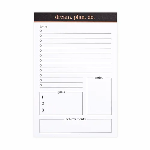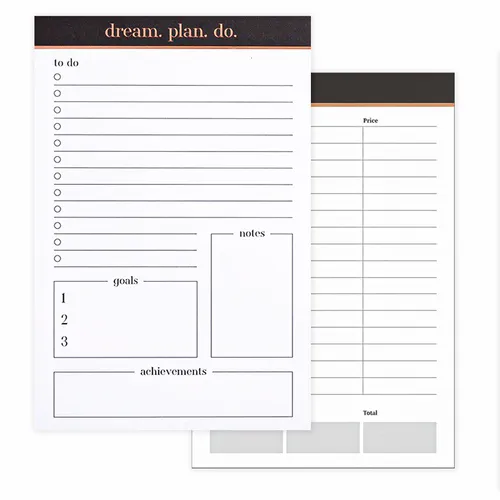 A versatile notepad designed for weekly planning, perfect for study schedules, work tasks, or personal goals.Size: 6 in x 9 inMaterial: 100gsm writing paperPages: 50 pagesLayout: Full-colour printing to the edgePrinting Method: UV PrintingFeatures: Thick, smooth paper for effortless writingColour: WhiteIdeal for anyone looking to stay organised with a simple, practical, and stylish weekly planner.