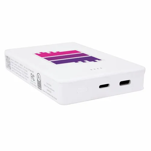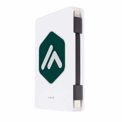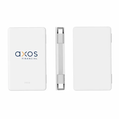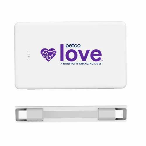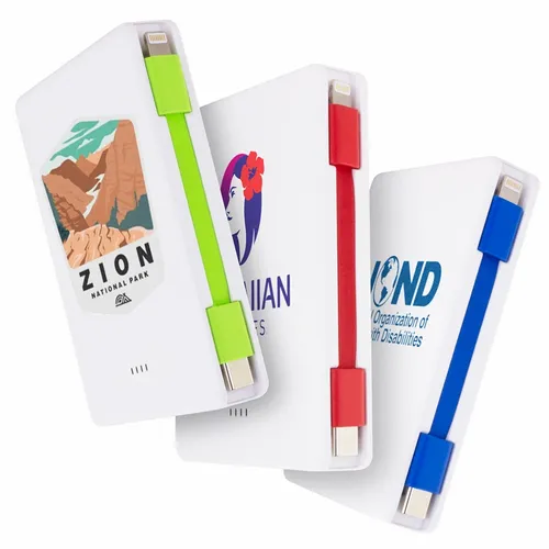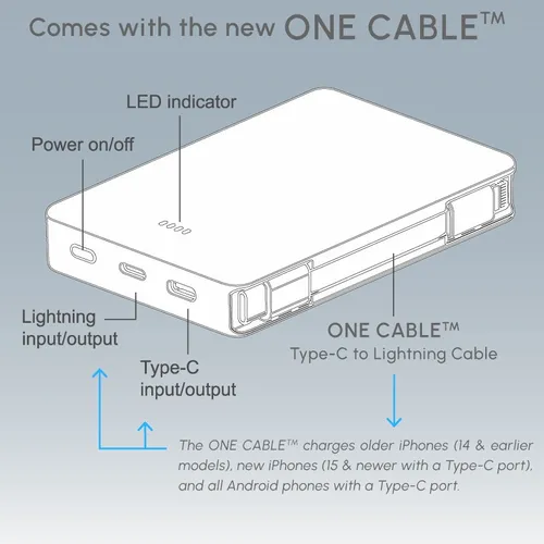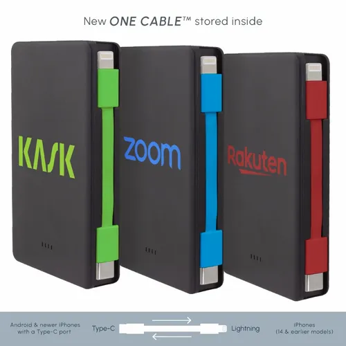 Keep business teams powered up with this officially UL-listed 5,000 mAh power bank that comes with a built-in storage section for a short Type-C to Lightning cable. The attached cable works with Android and Apple phones, PLUS, recharges the power bank. Having a cable always nearby will help keep teams efficient while speeding through a productive day. The innovative ONE CABLE™ solution charges old iPhones (14 and earlier models), new iPhones (15 and newer with a Type-C port), and all Android pho