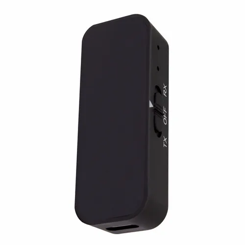 A transmitter that will connect your wireless headphones or earbuds to any audio jack. Use it on the plane, boat, or in the gym, anywhere there is an audio jack. Easily switch between transmit (TX) and receive (RX) modes. It has a 3.5mm audio aux port and Type-C charging port.