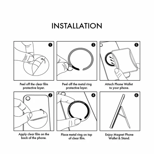 Serious business professionals need to keep an eye on their phones, and the Magnet Phone Wallet & Stand is a stylish way to prop up a phone on any busy office desk. The comfortable angle stays constant with an interconnecting strap between the two supports. The flap-stand magnetically stays closed when not in use. It also holds those important cards that everyone needs by their side. It is simple and easy to set up. Attach the included self-adhesive metal ring to the device, and that is it.