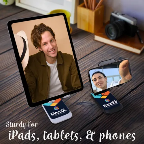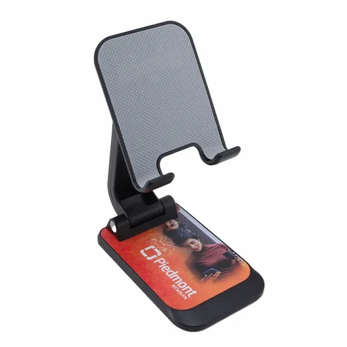 The Phone Stand helps busy teams keep their phone screens visible on home or office desktops. It reliably holds a phone in an elevated and upright position and will not block a phone's plug-in port. It is easy to use and keeps your hands free during those important video virtual meetings. So you can feel more comfortable and confident when closing that deal or presenting your next great idea. When not in use, it is foldable and compact so you can take it with you anywhere.