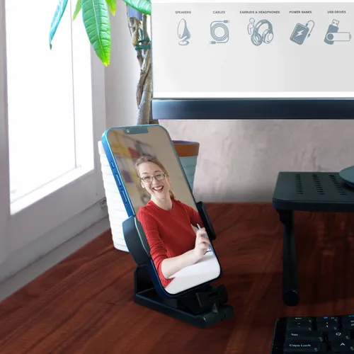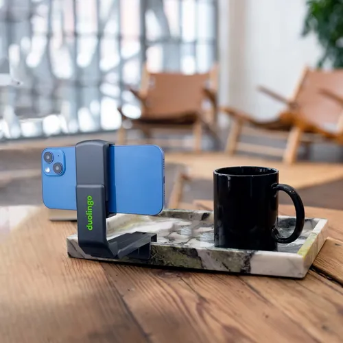 A perfect gift for busy teams that need to adapt to different environments throughout a busy work day. This product will cleverly and easily mount to edges that you will find on common items such as counters, handles, flight trays, chairs, and desks. It can also be adjusted to rest on a desktop with a phone screen at a comfortable upward viewing angle.