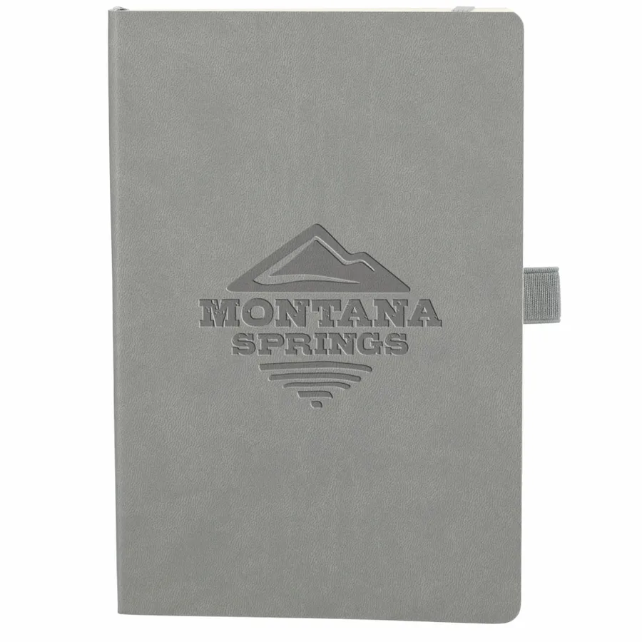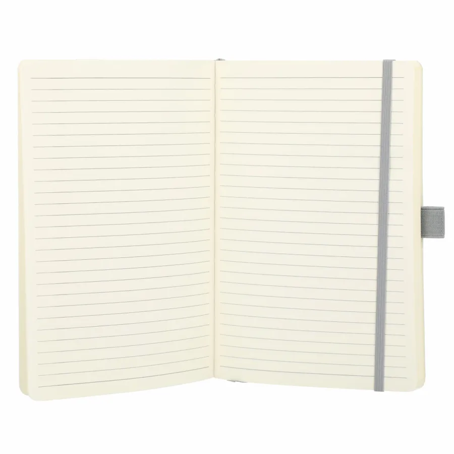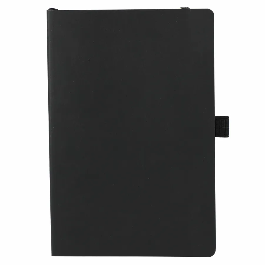 The 5.5 x 8.5” Skiva Recycled Soft Bound Journal features a recycled polyurethane cover and 80 pages of recycled cream lined paper. Includes document pocket, color matching elastic band, pen loop and ribbon page marker.