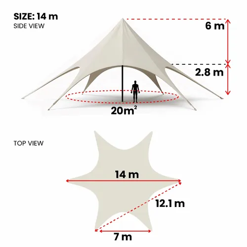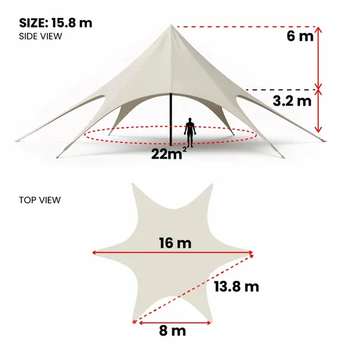 Create an unforgettable centerpiece for your next outdoor event with the stunning and spacious Star Tents. Engineered for high visibility and robust performance, this tent's unique star-shaped design provides a wide, open-air shelter perfect for exhibitions, festivals, corporate events, and advertising campaigns. Its dramatic silhouette is not only eye-catching but also offers significant shaded space, ensuring your brand stands out and your guests remain comfortable.