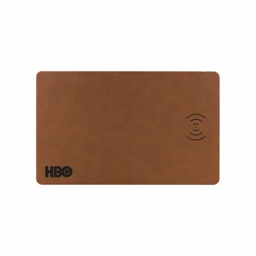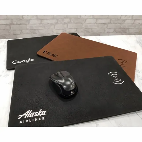 Well designed leatherette wireless charging mat and mouse pad makes an excellent desktop piece, helping to reduce clutter in style and to keep your phone charged up. Decorate with full colour printing or laser engraving. Laser engrave on black to show your logo in silver. Laser engrave on brown to show your logo in gold.