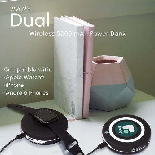 Dual wireless 5200 mAh power bank - compatible with Apple Watch®, iPhone, and Android Phoness - ImprintNow.co.uk