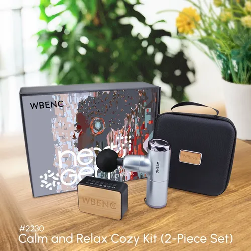 The Calm and Relax Cosy Kit comes with our Sound Machine and Massage Gun with Zip Case Packaging. It's a great way to give the gift of self-care and wellness to a team that works hard throughout the year. Includes: #2085Z Massage Gun With Zip Case Packaging and #2061 Sound Machine