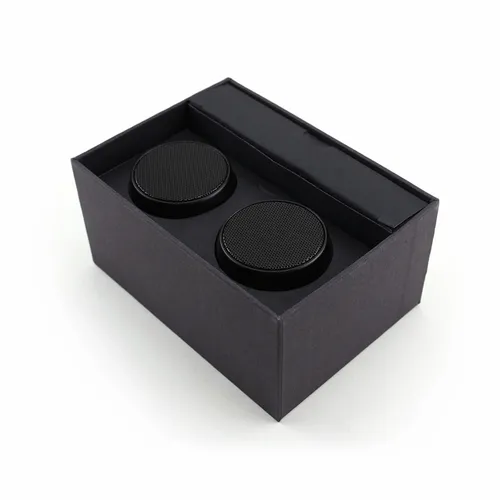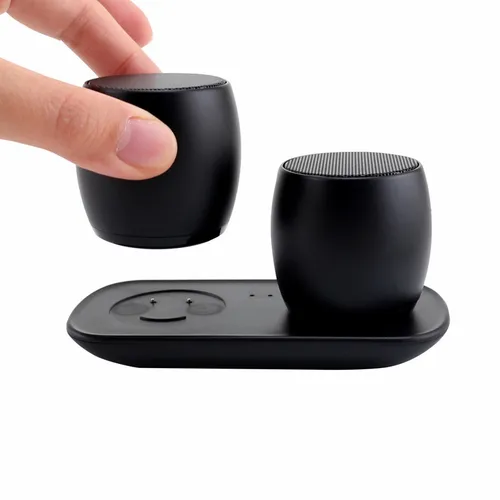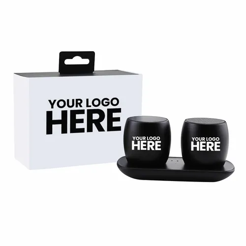 Portable stereo surround sound speakers that come with a beautiful custom full-colour sleeve for maximum brand exposure. Simply pair this stylish pair of wireless Speakers to each other, and then to your smartphone to enjoy the sound of your favorite music and movies all around you! You can also loan one to a friend as the Nano Twins can be used independently as well!